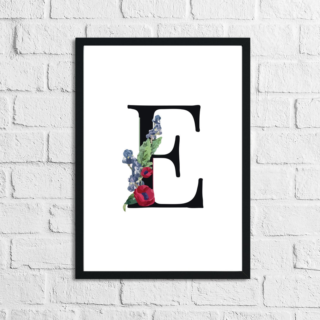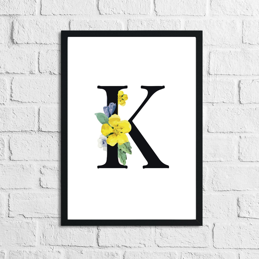 Personalised Black Initial Floral Children's Room Wall Decor Print