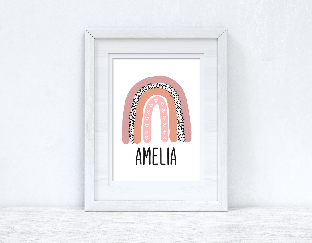 Personalised Earthy Pinks Rainbow Name Boho Children's Room Wall Bedroom Decor Print
