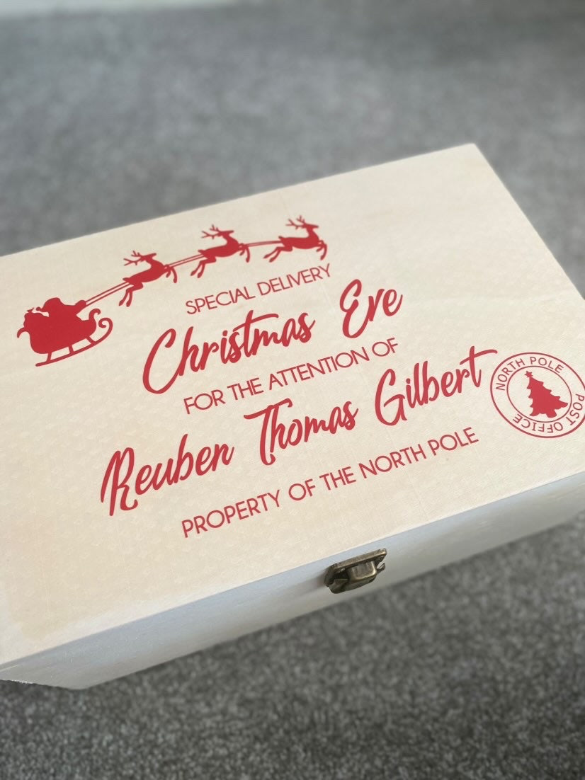 Make Christmas even more magical with our personalised Christmas Eve Box Sticker. Designed to fit wooden craft boxes, this vinyl sticker adds a festive and personal touch to your child’s Christmas Eve surprise. Simply enter the child's name into the customisation box and we’ll take care of the rest.