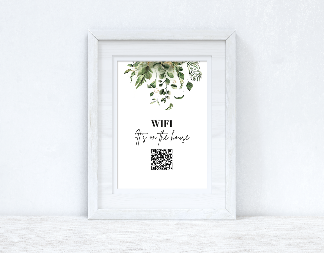 Personalised Wifi It's On The House Greenery Wifi QR Scan Home Wall Decor Print