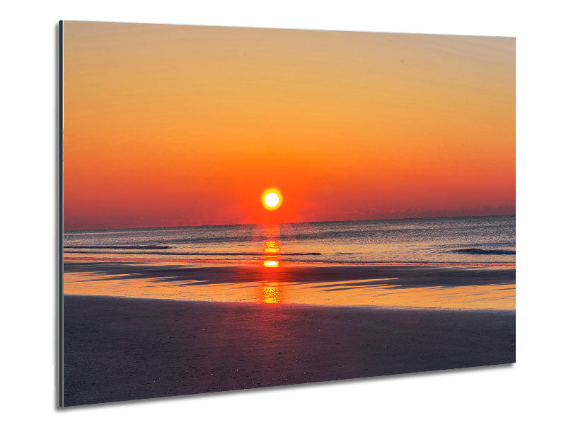 Piercing Orange Sun Blaze Printed on brushed aluminium dibond. A modern way to display art and easy to maintain.
