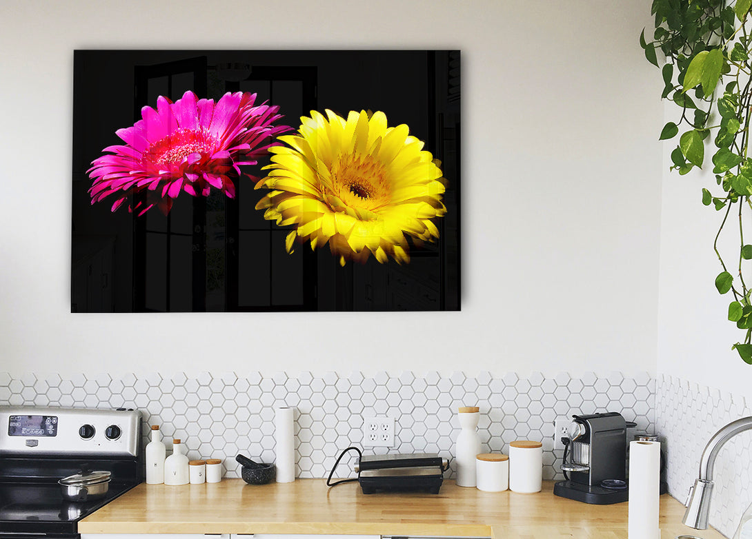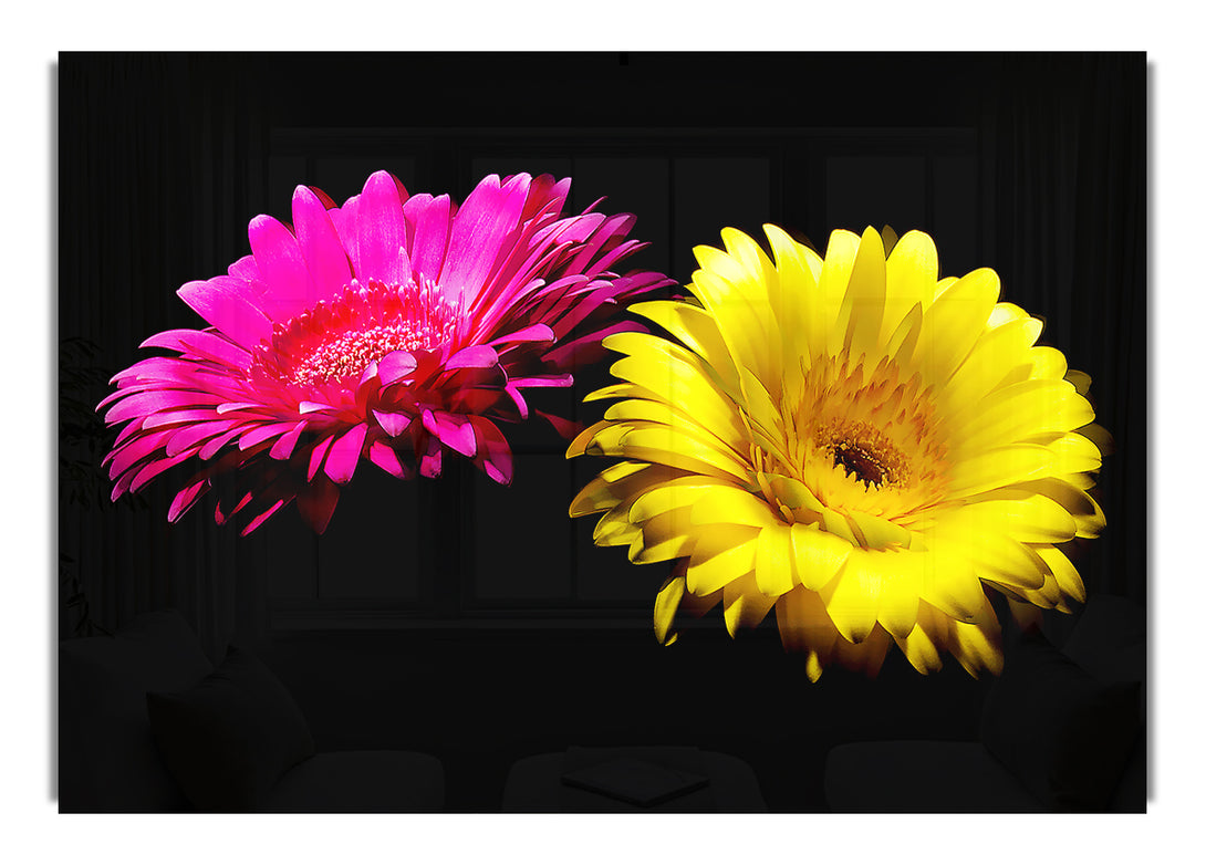 Pink And Yellow Gerbera Delight acrylic print, UV printed onto 5mm thick acrylic glass. Comes with everything you need to hang on your wall.