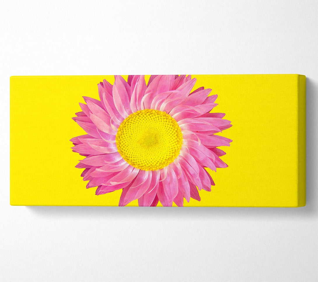 Picture of Pink Daisy On Yellow Twist Panoramic Canvas Wall Art