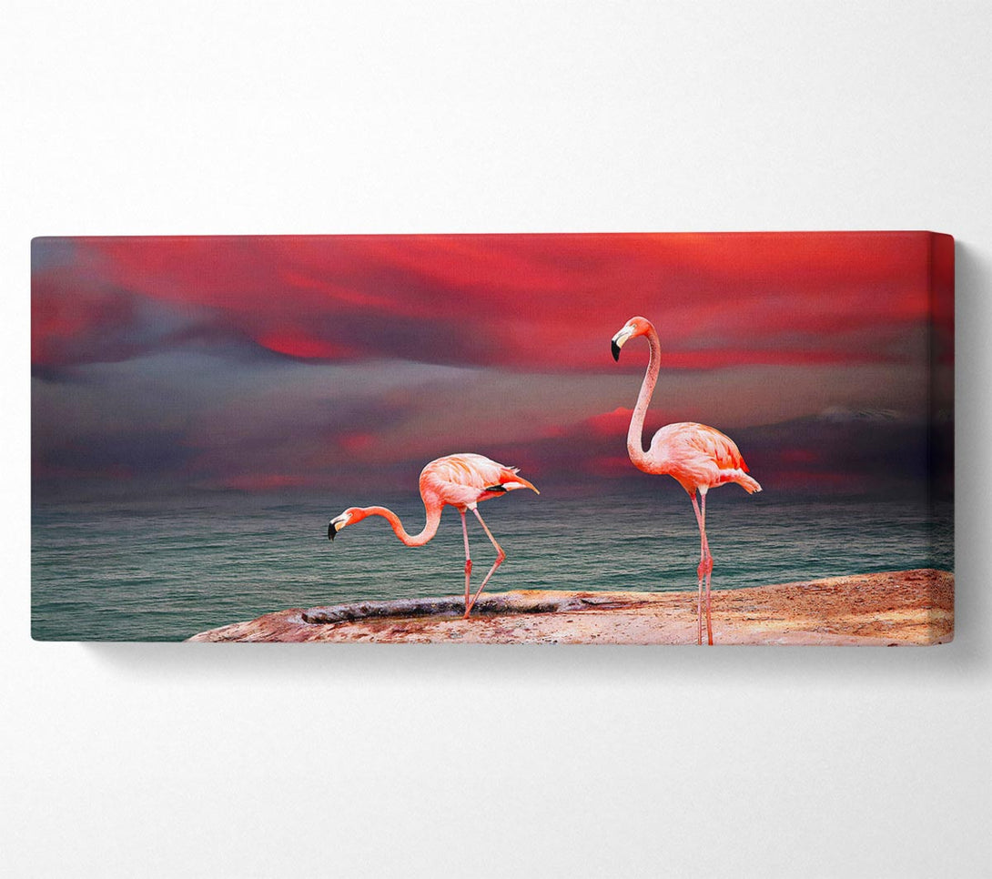 Picture of Pink Flamingo Ocean Panoramic Canvas Wall Art