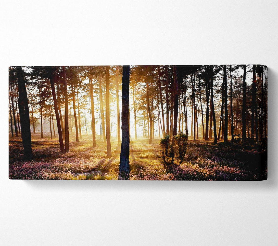 Pink Forest Beams canvas, printed on coated polyester canvas. Mounted on to a 44mm box frame, ready to hang.