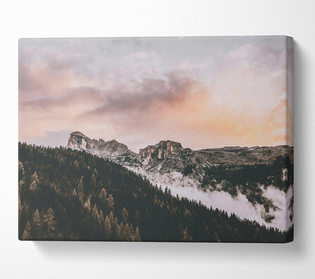A Canvas Print of Pink-Hued Mountaintop Mist Canvas Wall Art
