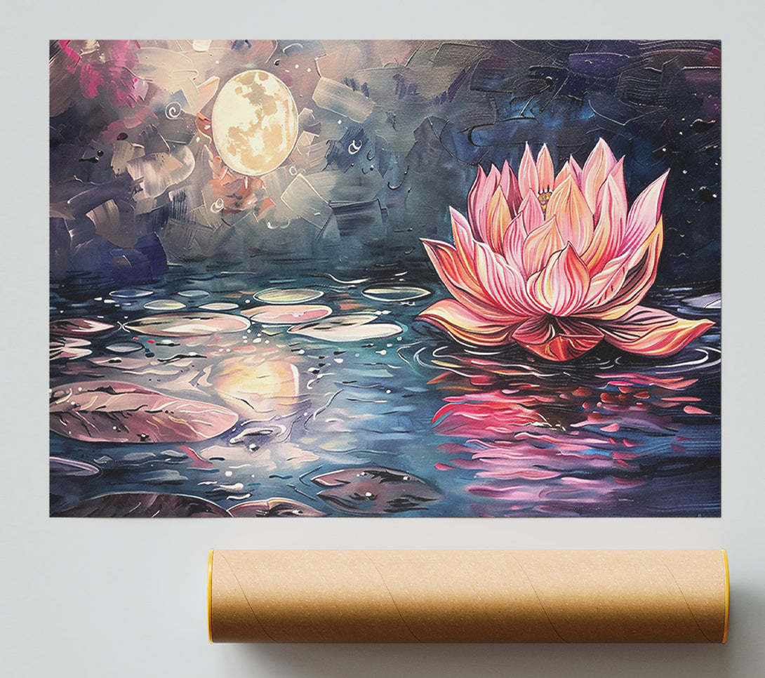 Our Pink Lotus Moonlit Night Poster is printed 260 GSM premium lustre paper that offers vibrant colours and exceptional detail.