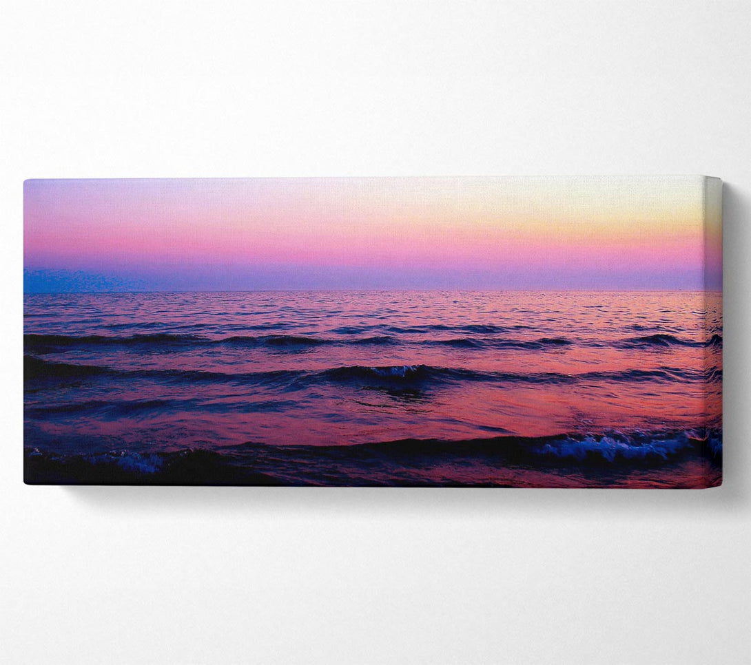Pink n Purple Waves Of The Ocean canvas, printed on coated polyester canvas. Mounted on to a 44mm box frame, ready to hang.