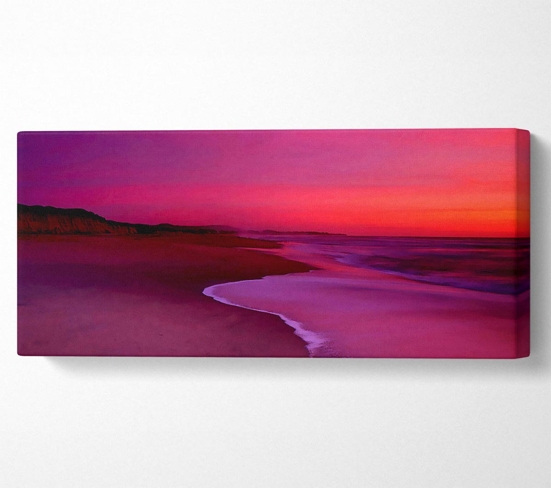 Pink Ocean Shore canvas, printed on coated polyester canvas. Mounted on to a 44mm box frame, ready to hang.