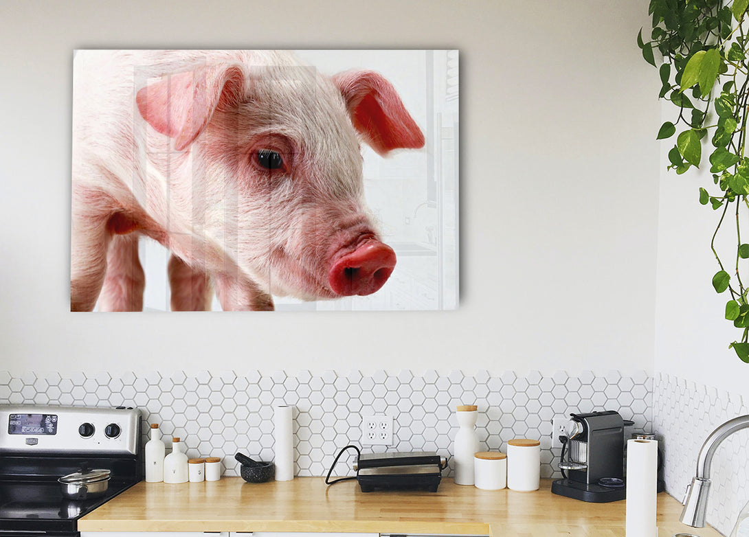 Pink Pig acrylic print, UV printed onto 5mm thick acrylic glass. Comes with everything you need to hang on your wall.