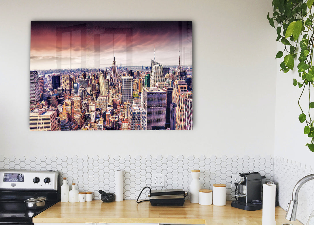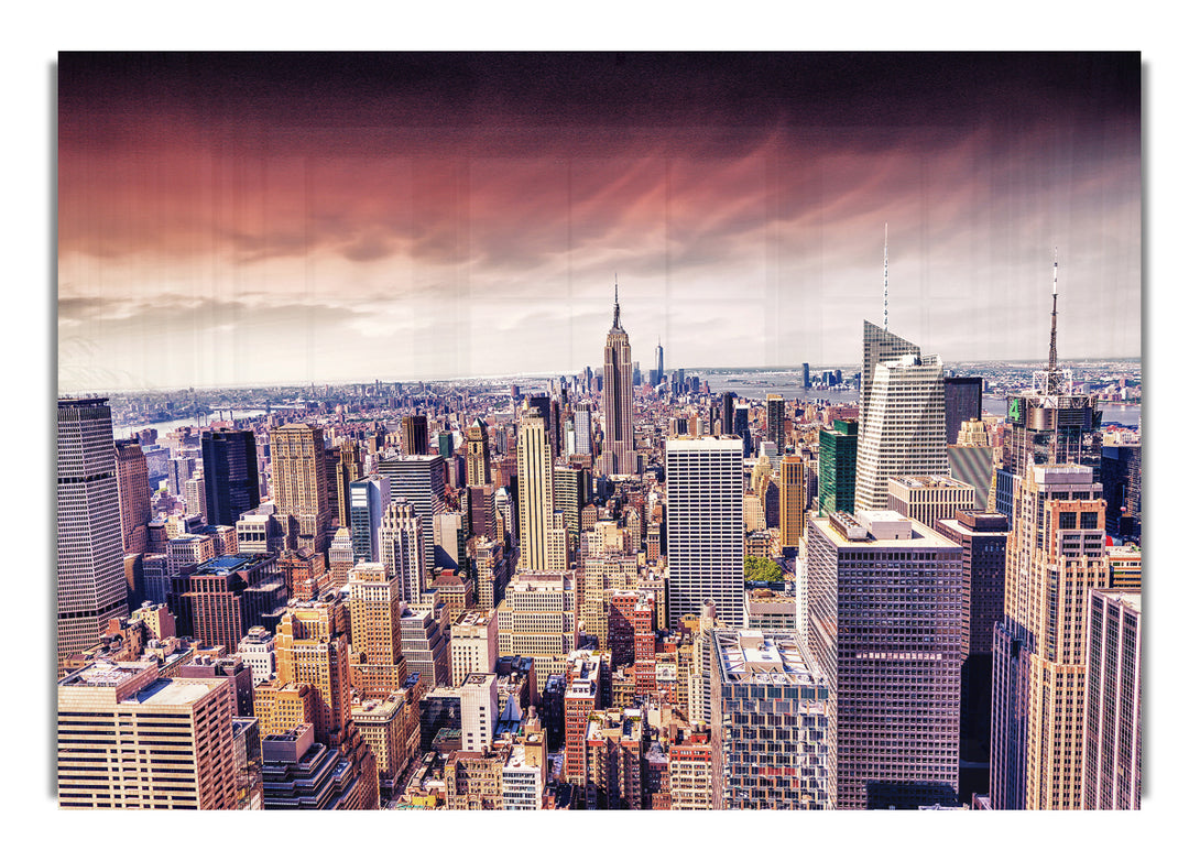 Pink Skies Over NYC acrylic print, UV printed onto 5mm thick acrylic glass. Comes with everything you need to hang on your wall.