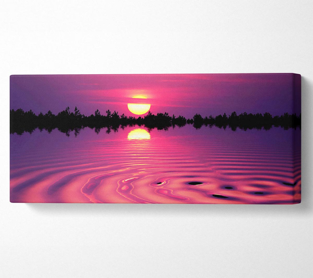 Pink Sunset Lake Swirl canvas, printed on coated polyester canvas. Mounted on to a 44mm box frame, ready to hang.