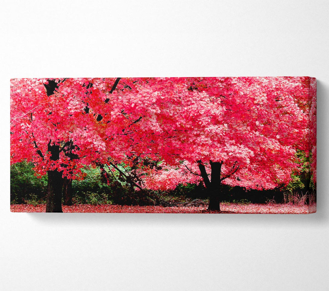 Pink Tree Heaven canvas, printed on coated polyester canvas. Mounted on to a 44mm box frame, ready to hang.