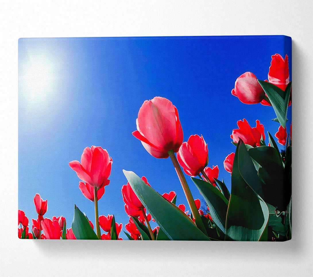 A Canvas Print of Pink Tulips In The Blazing Sun Canvas Print