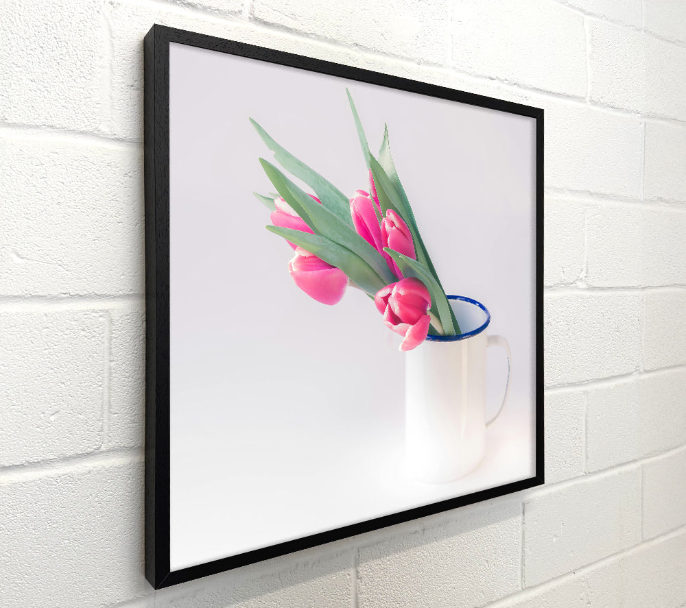 Pink Tulips In White Mug