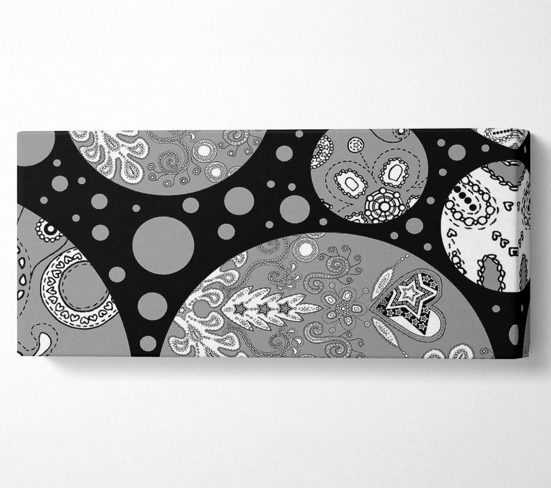 Planets Grey canvas, printed on coated polyester canvas. Mounted on to a 44mm box frame, ready to hang.