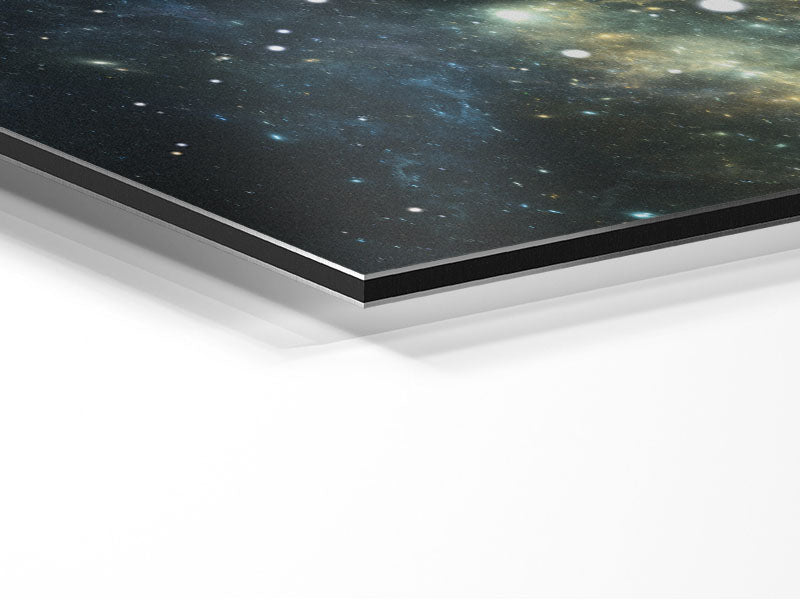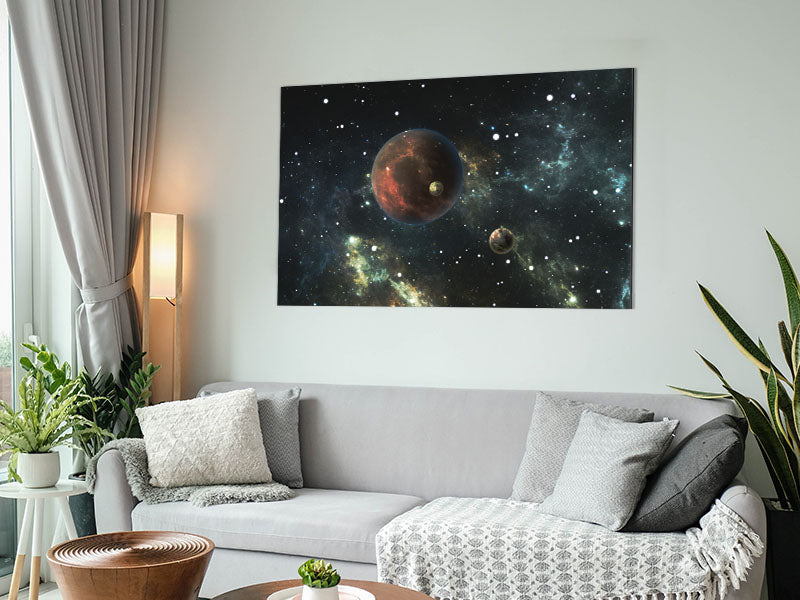 Planets in the dark skies Printed on brushed aluminium dibond. A modern way to display art and easy to maintain.