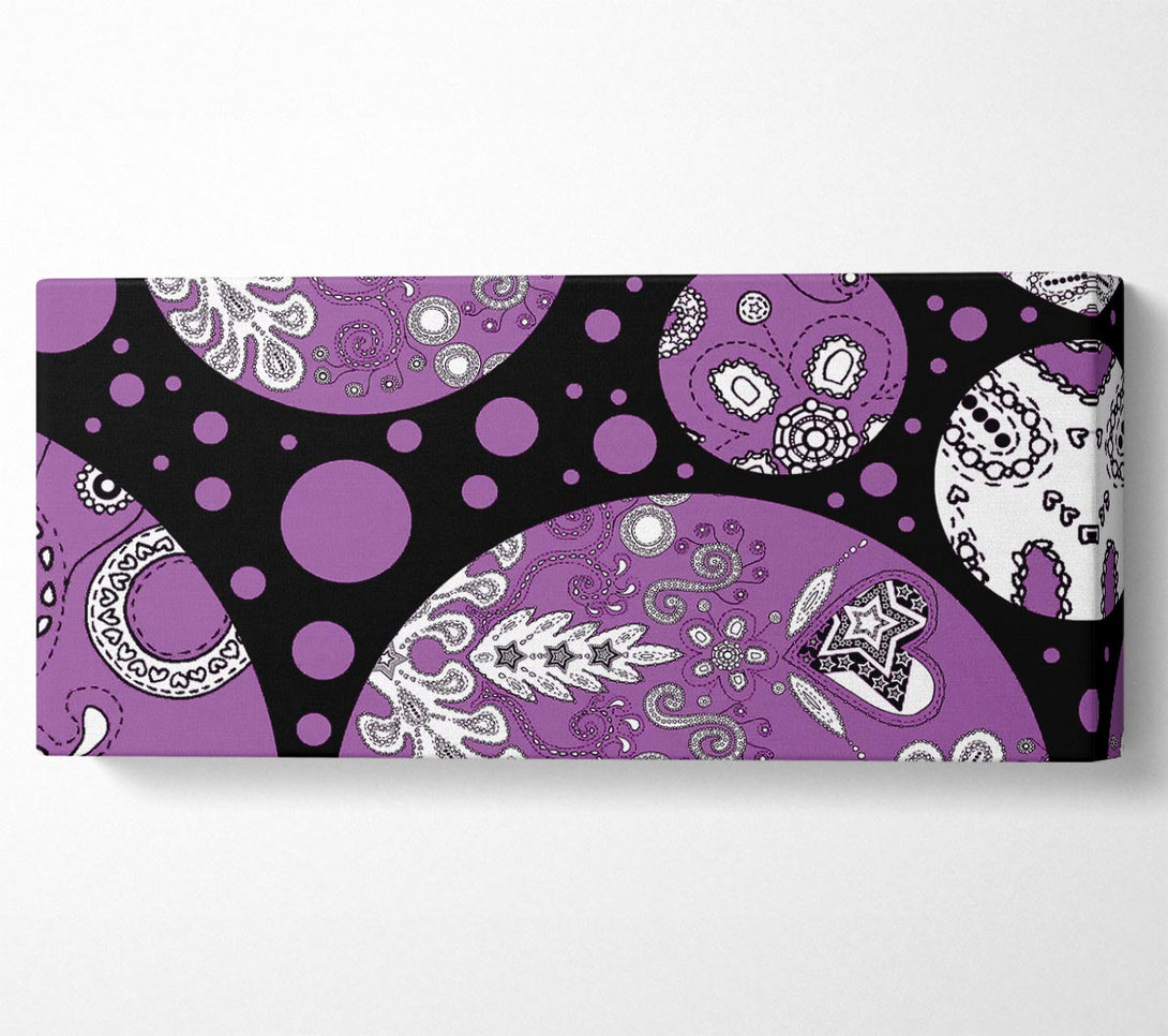 Planets Purple canvas, printed on coated polyester canvas. Mounted on to a 44mm box frame, ready to hang.