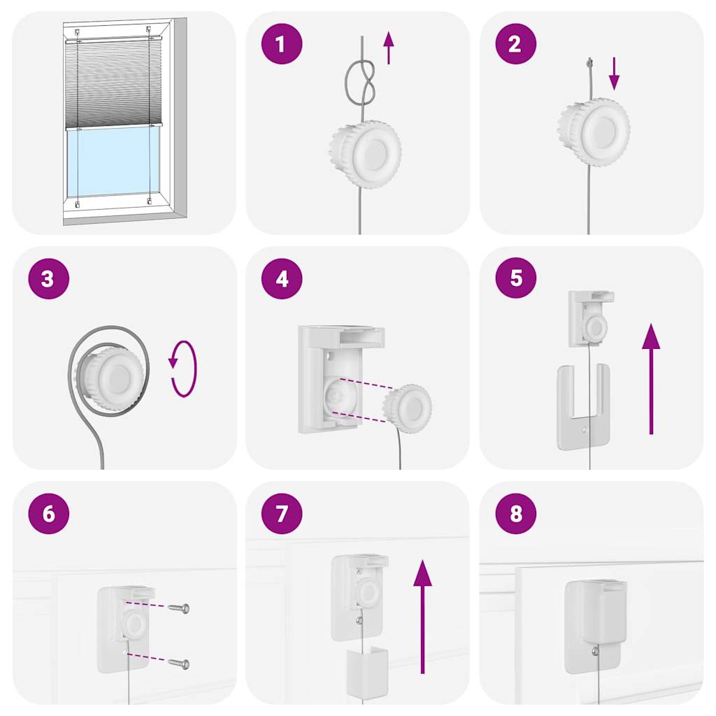 Elevate your room's style and functionality with this pleated blind, offering privacy and elegance. Durable and low maintenance: Made from 100% polyester, the pleated blind is built to last and resist wear and tear. They are also easy to clean, typically requiring light dusting or wiping with a damp cloth.Privacy and sun protection: The blind is not transparent but also not fully darkening, providing optimal privacy and glare protection with its pleated fabric. You can adjust the level of privacy by moving it up or down.Two assembly ways: You can attach the pleated blind to the wall or window with screws or without drilling using clamping brackets, depending on your needs.Elegant design: Thanks to its sleek and modern pattern design, this pleated blind effortlessly complements a variety of room decor. You can use it in the living room, bedroom, office, and so on. Warning: Keep cords out of the reach of young children. Cords may become wrapped around a child’s neck. Good to know:Before buying blinds, start by measuring your window glass. Just a friendly tip: the fabric is a bit narrower than the total width, including the brackets.To make sure your new blinds provide complete coverage, just add 0,6 cm to the width of the window glass when calculating what to order.