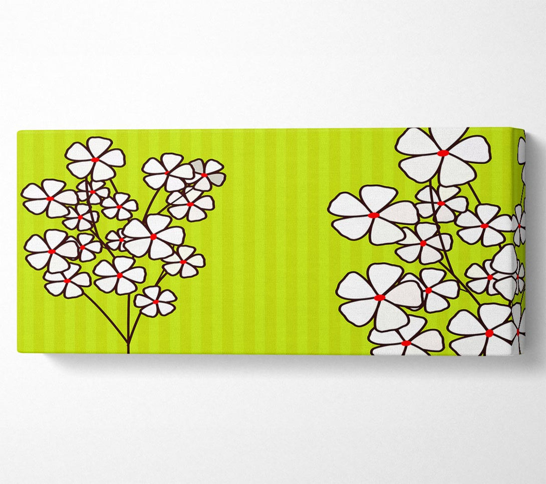 Poppies On Lime Green canvas, printed on coated polyester canvas. Mounted on to a 44mm box frame, ready to hang.