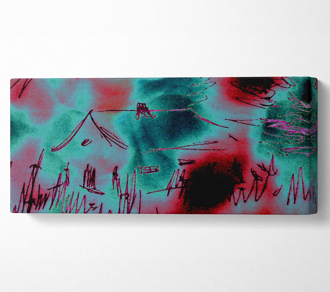 Poppy Sky House canvas, printed on coated polyester canvas. Mounted on to a 44mm box frame, ready to hang.