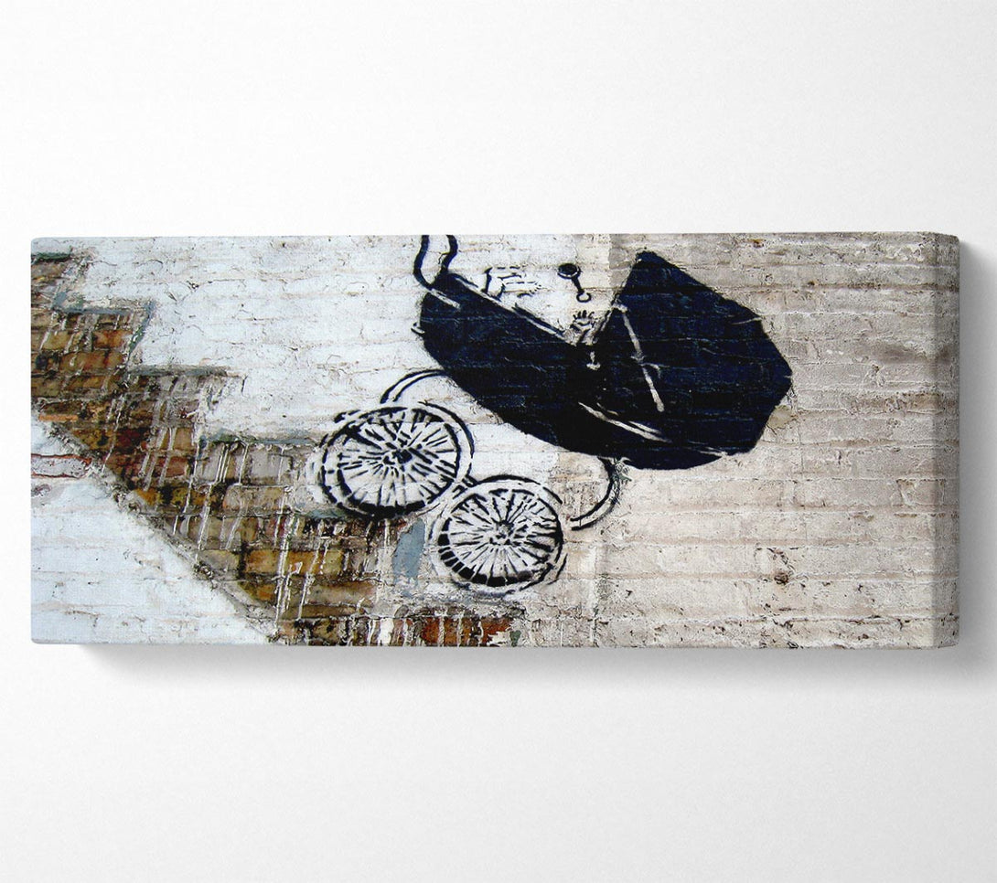 Pram Stairs canvas, printed on coated polyester canvas. Mounted on to a 44mm box frame, ready to hang.
