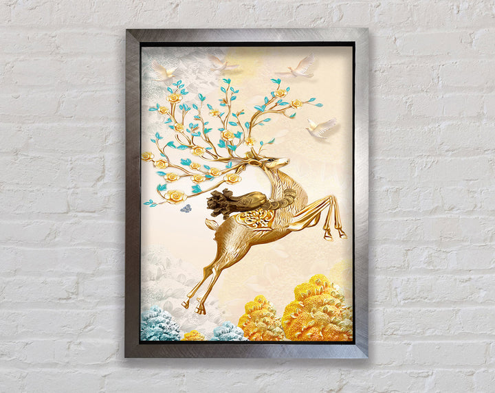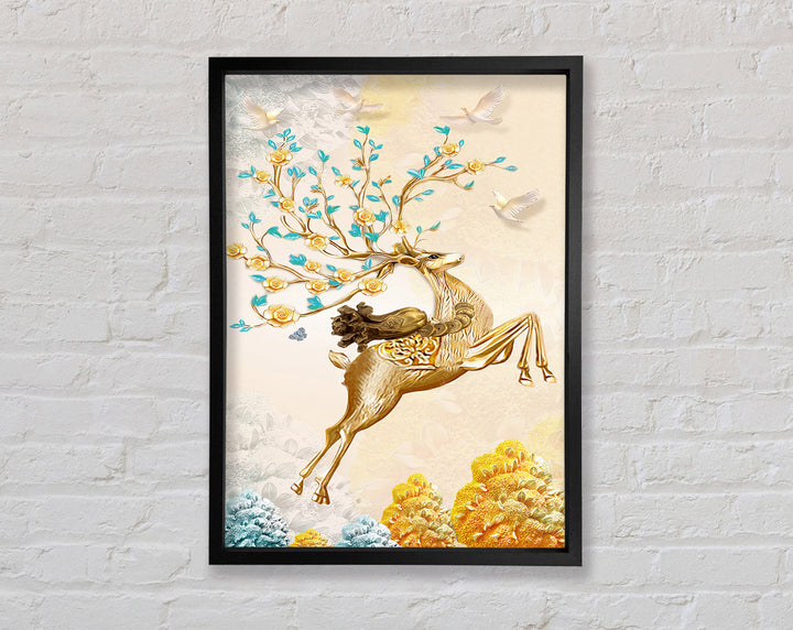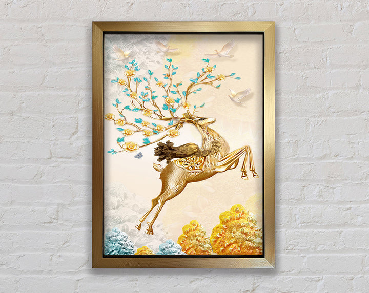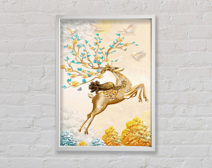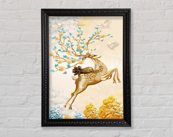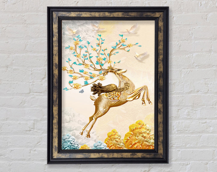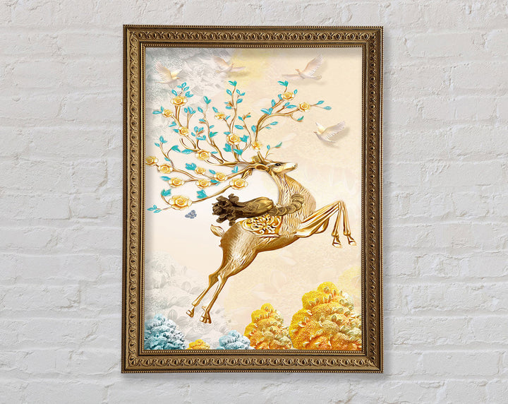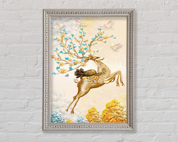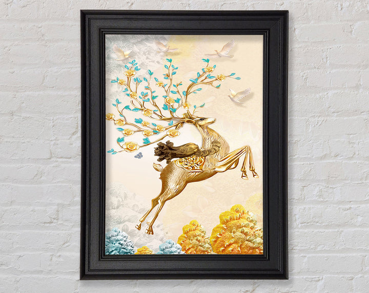 Add a touch of festive elegance to your home with the Prancing Gold Reindeer Framed Print. This exquisite piece of framed art is available in six different sizes, from small to oversized, making it perfect for any space. Choose from a variety of colors to match your decor. Each print features a beautiful gold reindeer prancing gracefully, adding a magical holiday vibe to your room. Ready to hang, this framed art is handmade in the United Kingdom, ensuring high-quality craftsmanship. Whether you're decorating your living room, bedroom, or hallway, this charming print will bring warmth and joy to your home.