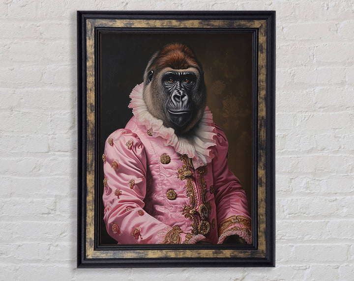 Introducing the Prince Gorilla Framed Print, a stunning piece of framed art that adds a touch of wild elegance to any space. This unique print features a majestic gorilla, crowned as royalty, making it a conversation starter in any room. Available in six sizes, from small to oversized, you can find the perfect fit for your home or office. Choose from a variety of colors to match your décor. Each piece is handmade in the United Kingdom, ensuring top-notch quality and craftsmanship. Best of all, it's ready to hang, making it easy to elevate your interior design instantly. Transform your space with the Prince Gorilla Framed Print today!
