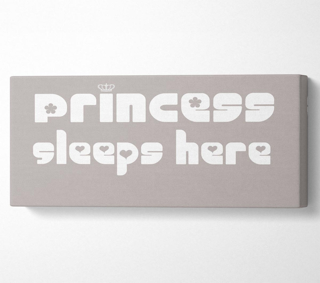 Princess sleeps 2 Beige canvas, printed on coated polyester canvas. Mounted on to a 44mm box frame, ready to hang.