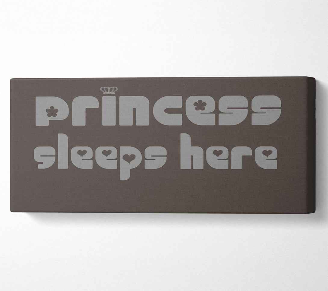 Princess sleeps 2 Chocolate canvas, printed on coated polyester canvas. Mounted on to a 44mm box frame, ready to hang.