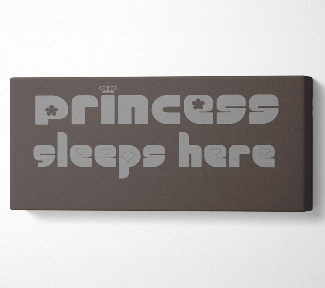 Princesss Sleeps Here 2 Chocolate canvas, printed on coated polyester canvas. Mounted on to a 44mm box frame, ready to hang.