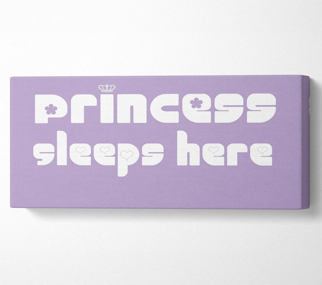 Princesss Sleeps Here 2 Lilac canvas, printed on coated polyester canvas. Mounted on to a 44mm box frame, ready to hang.