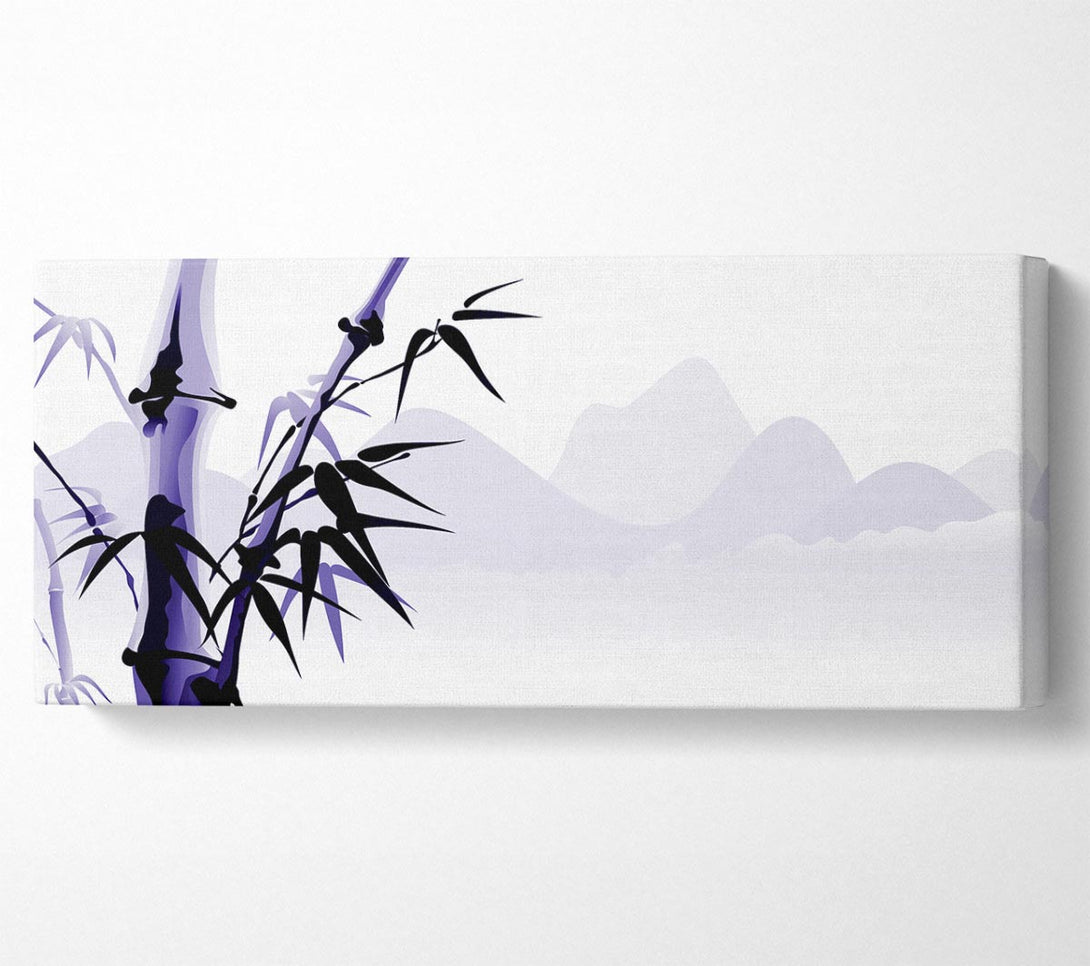 Purple Bamboo Mountains canvas, printed on coated polyester canvas. Mounted on to a 44mm box frame, ready to hang.