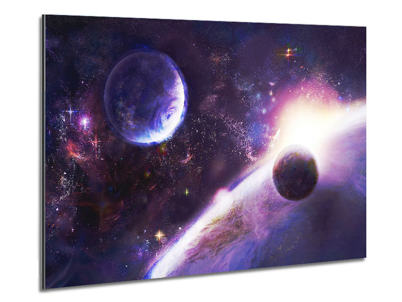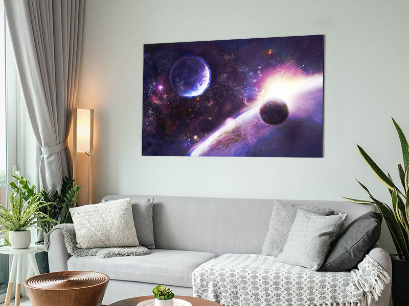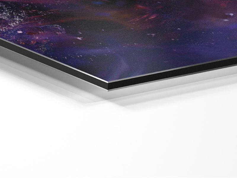 Purple Planet Glow Printed on brushed aluminium dibond. A modern way to display art and easy to maintain.
