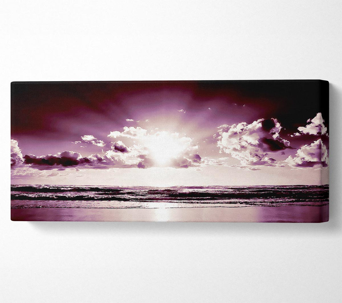 Purple Sunbeams canvas, printed on coated polyester canvas. Mounted on to a 44mm box frame, ready to hang.