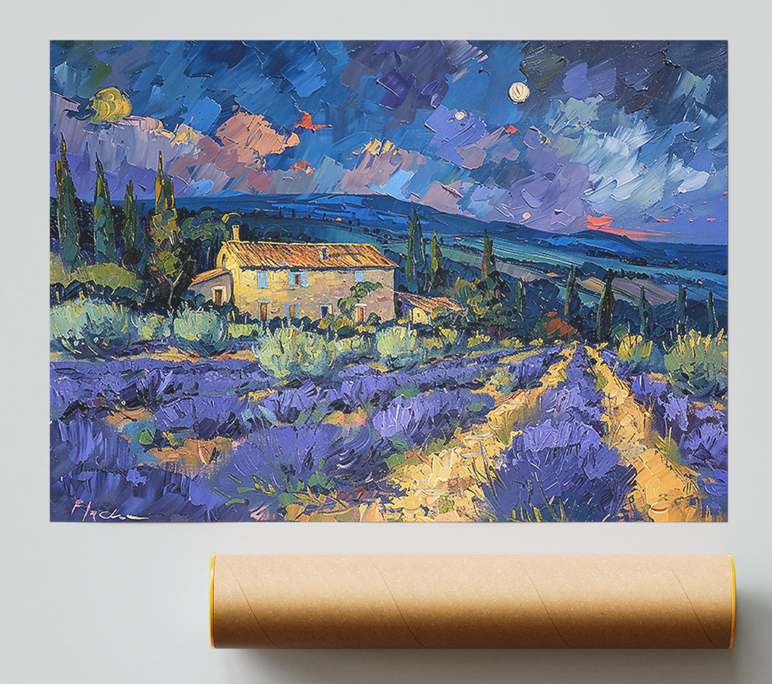 Our Purple Twilight Fields Poster is printed 260 GSM premium lustre paper that offers vibrant colours and exceptional detail.