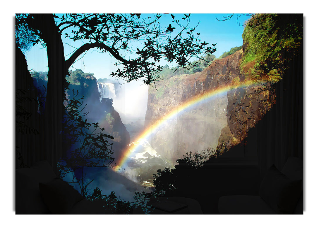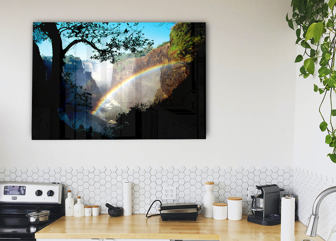 Rainbow Waterfall acrylic print, UV printed onto 5mm thick acrylic glass. Comes with everything you need to hang on your wall.