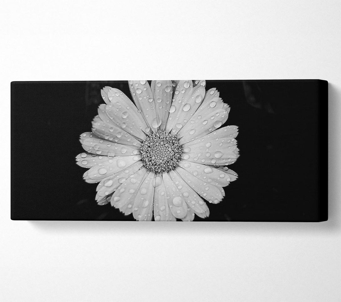 Raindrops On Flower canvas, printed on coated polyester canvas. Mounted on to a 44mm box frame, ready to hang.