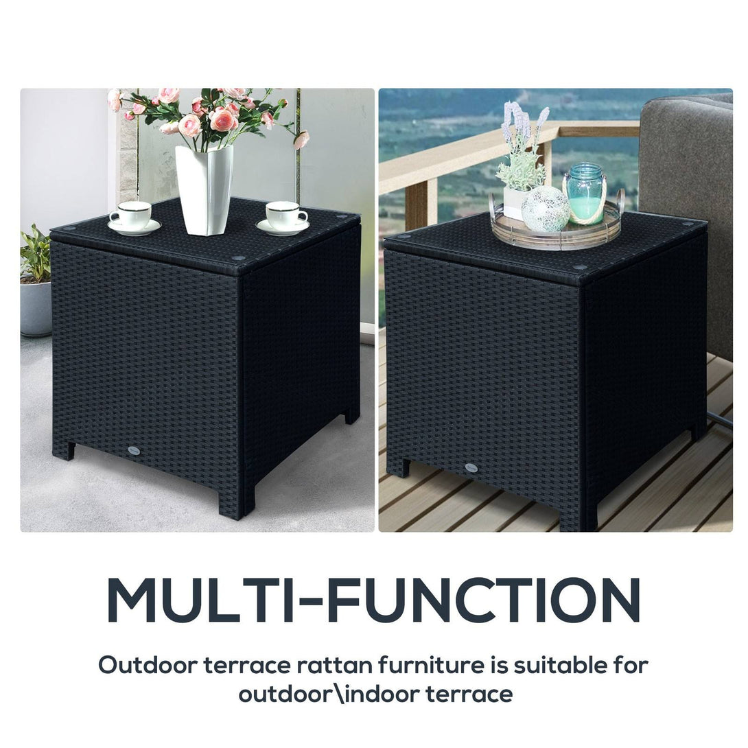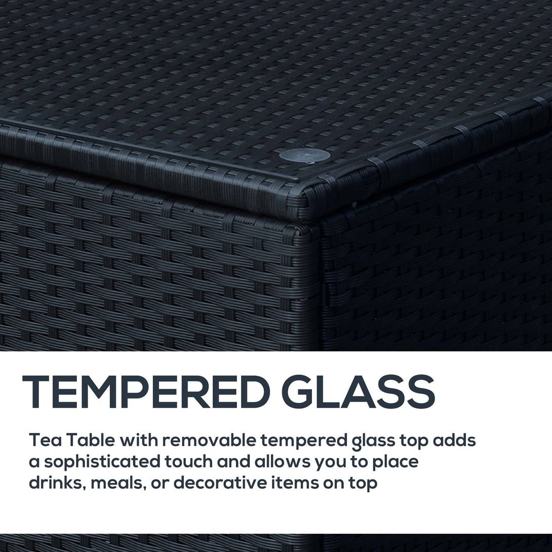Rattan Garden Furniture Side Table Patio Frame Tempered Glass New -Black