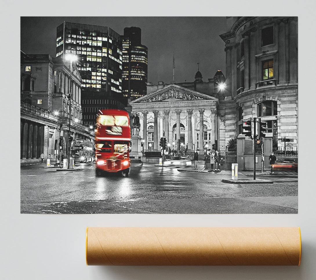 Red Bus In The Heart Of The City Poster