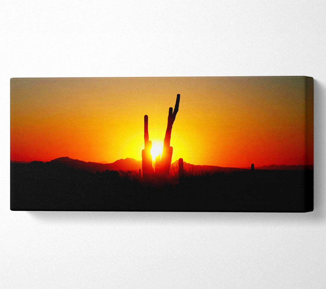 Red Cactus Sunrise canvas, printed on coated polyester canvas. Mounted on to a 44mm box frame, ready to hang.