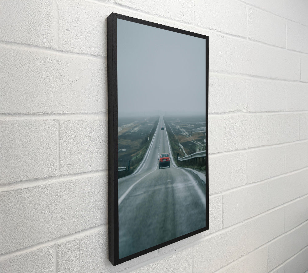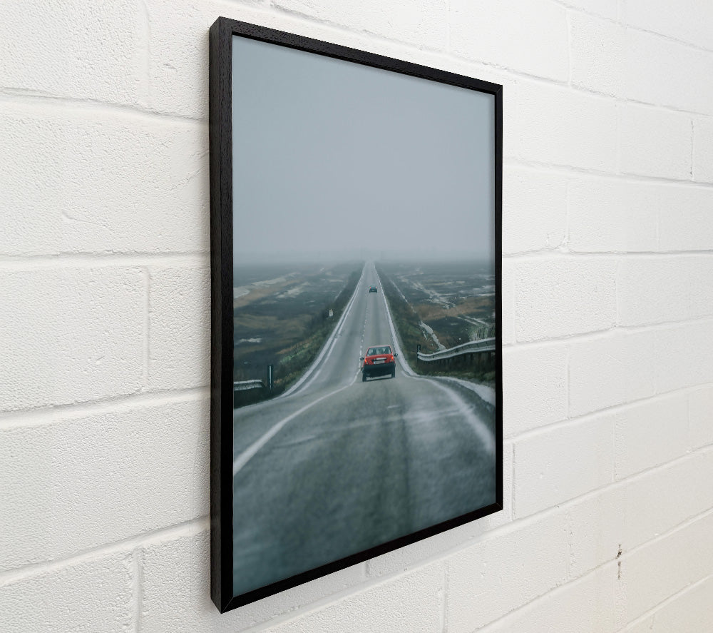 Red Car Through Foggy Road