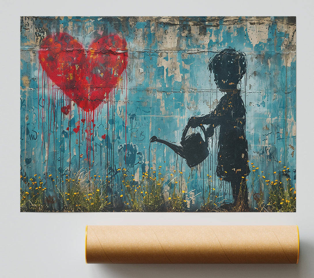Our Red Heart Watering Can Poster is printed 260 GSM premium lustre paper that offers vibrant colours and exceptional detail.