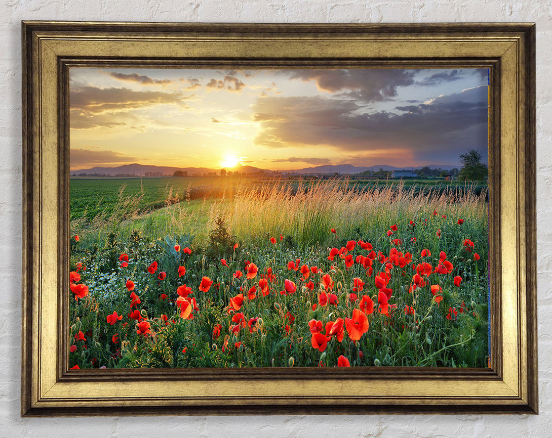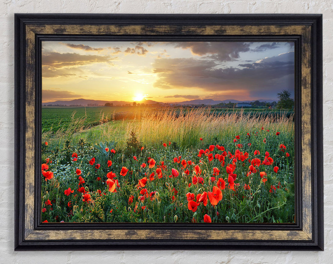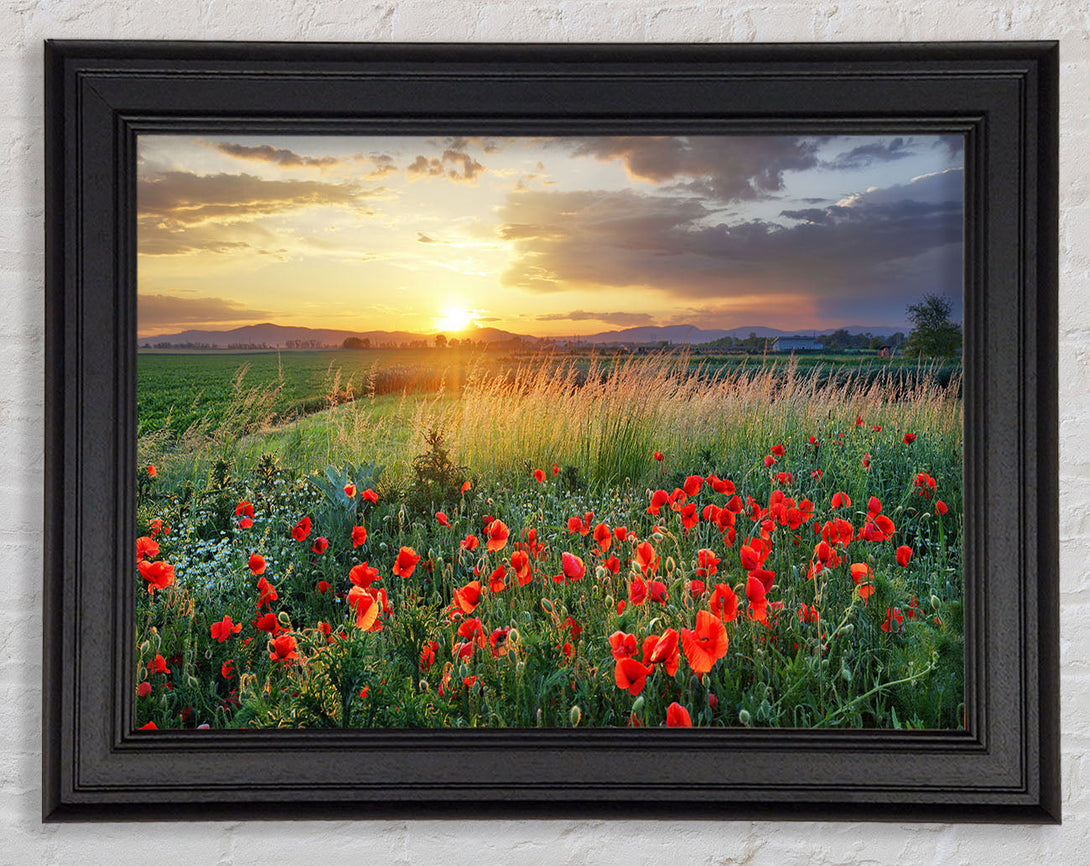 Red poppies in the green countryside Framed Print