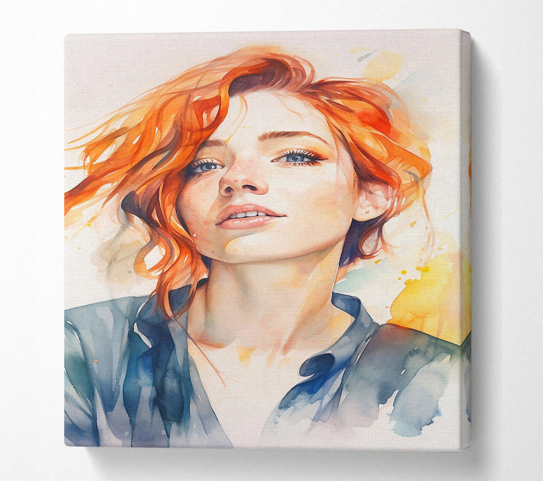 Redhead Freckles Watercolour Canvas Print