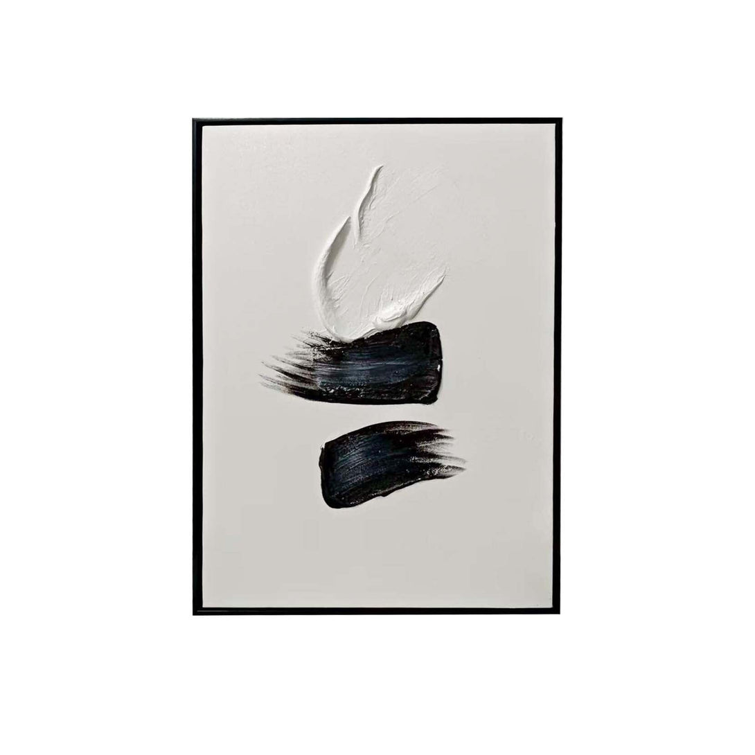 Featuring bold black strokes and raised white textures, this piece creates a modern, minimalist statement.