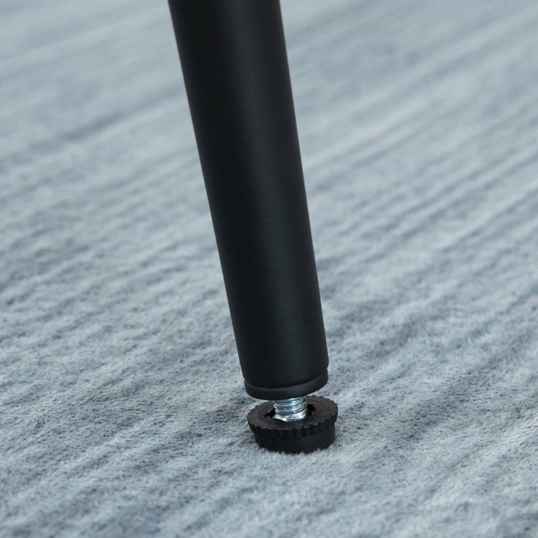 Style up your dining area with these two retro look barstools from HOMCOM. Whether you want to start the morning with a comfy breakfast or end the night with drinks, they give you what you need. Polished faux leather is sleek, with diamond patterns for added style. The powder-coated steel frames are strong, with a footrest to hold the legs and feet at a comfortable level. Comes in a set of two for matching style.