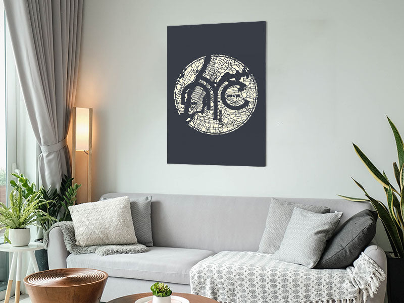 Retro map Of The City 2 Printed on brushed aluminium dibond. A modern way to display art and easy to maintain.