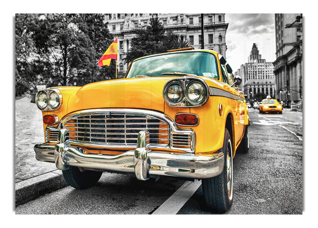 Retro Yellow Cab acrylic print, UV printed onto 5mm thick acrylic glass. Comes with everything you need to hang on your wall.