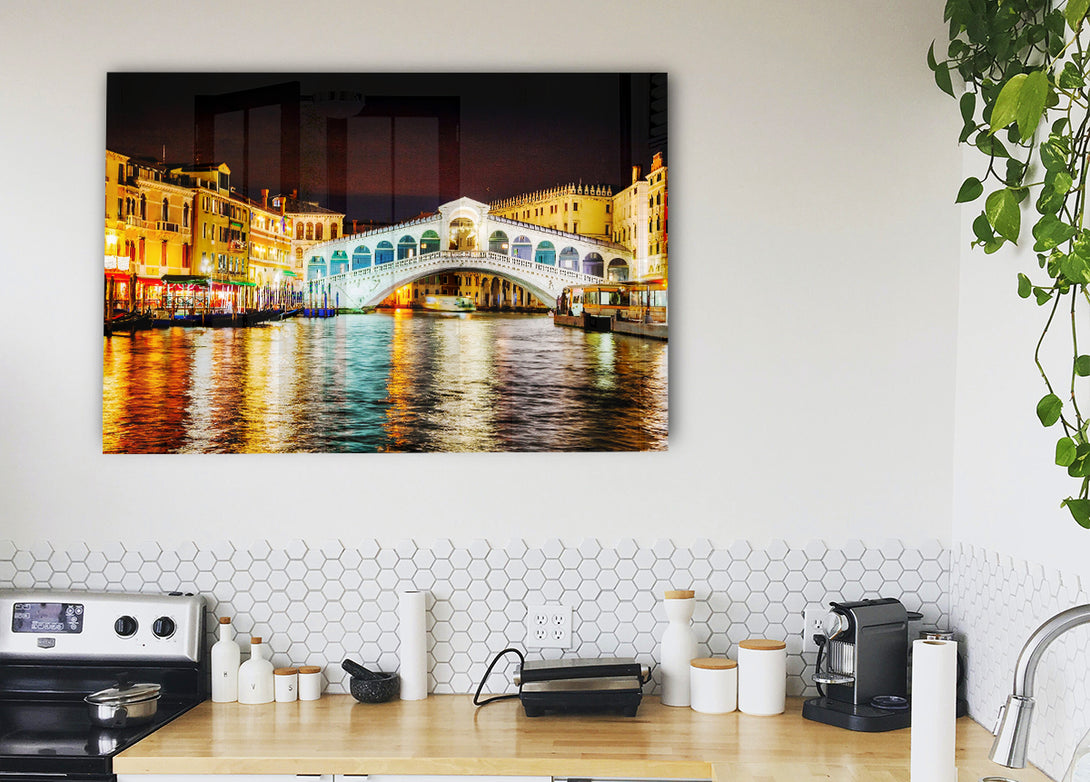Rialto In Lights acrylic print, UV printed onto 5mm thick acrylic glass. Comes with everything you need to hang on your wall.